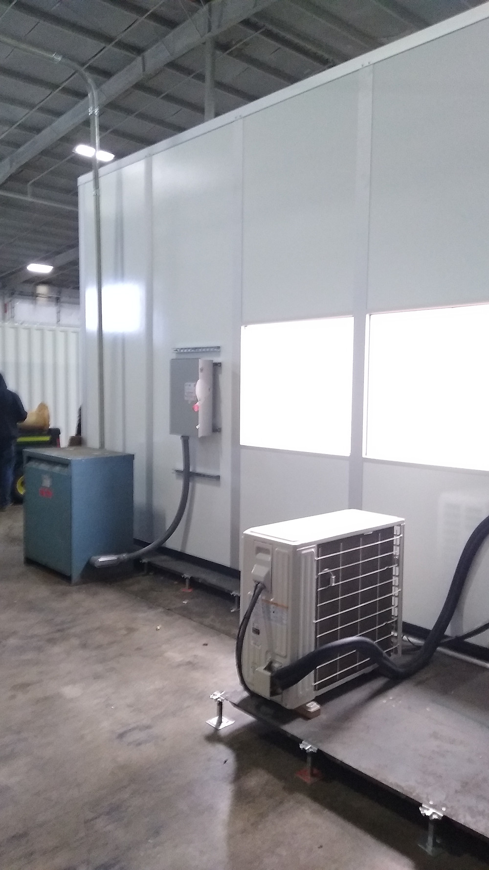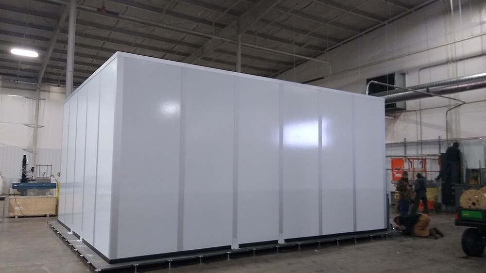Heartland Harvest Processing asked Biologics Modular to design and build a clean space to allow them to carry out their post extraction refinery activity with the CBD crude oil. The room required high ceilings, a 9’ high entry door for their equipment and a special HVAC system that would draw from outside air and pass it through a HEPA bank prior to delivery. The whole room was built on a false floor in order to help provide a level starting point.